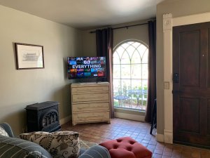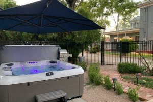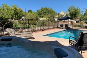The Cottage offers privacy and seclusion, located at the back of our property. Many amenities are included such as a Cal King-size bed, private bath with large walk-in shower, separate jetted tub, air conditioner, kitchenette with coffee maker, 42-inch flat-screen Samsung T.V. with Hulu + plus Live T.V. package, wifi, pool, hot tub, and off street parking.